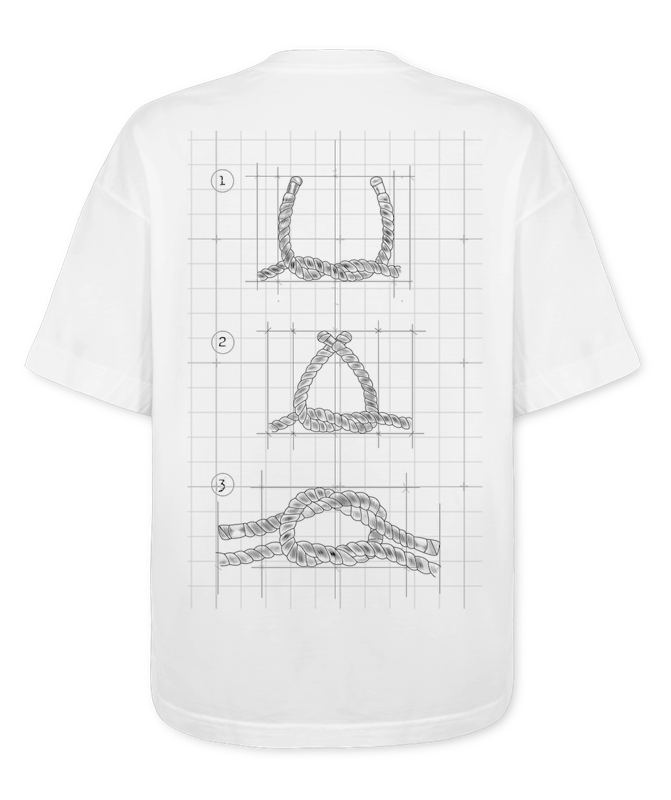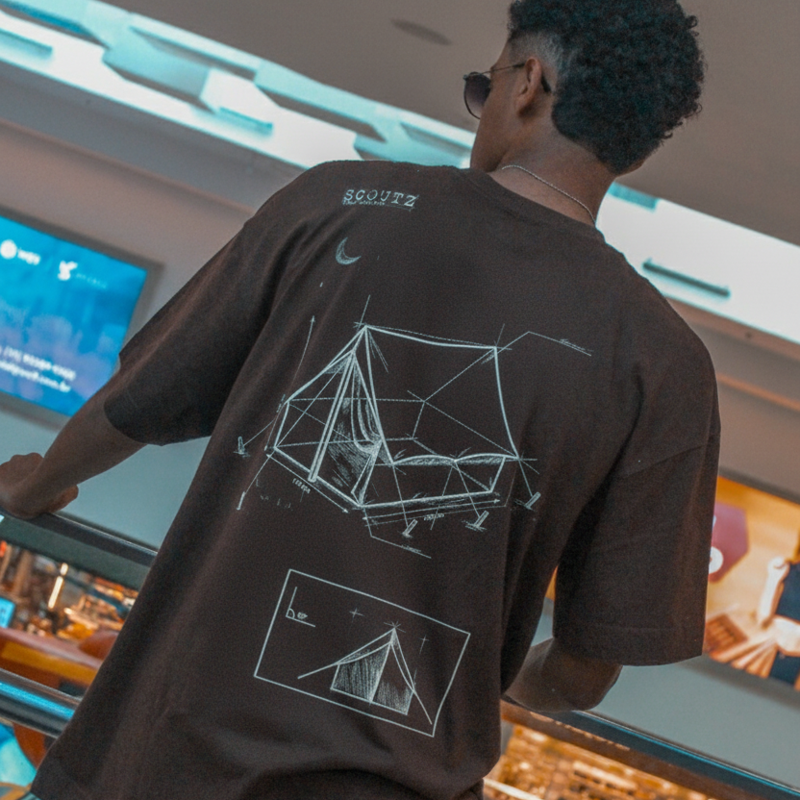 Camiseta Oversized Nó Direito Estilo que une. Com modelagem oversized e estampa do nó direito — sÃmbolo de amizade, união e irmandade escoteira — essa peça conecta tradição e lifestyle urbano em um só look.