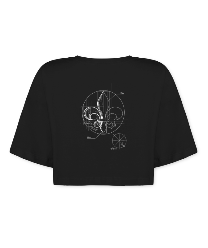 Cropped Street Flor-de-Lis. Conforto e estilo para quem carrega o espÃrito escoteiro. Modelagem street com estampa exclusiva da flor-de-lis, sÃmbolo de aventura, união e vida ao ar livre.